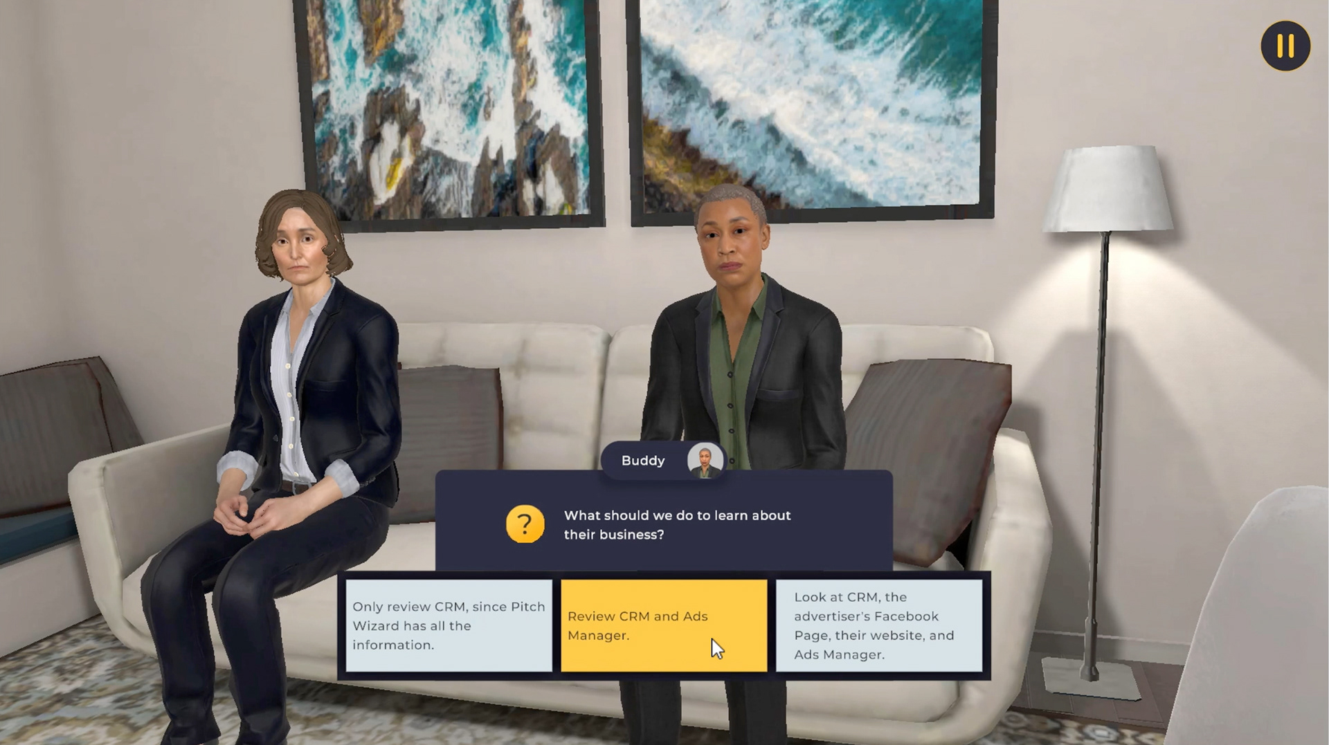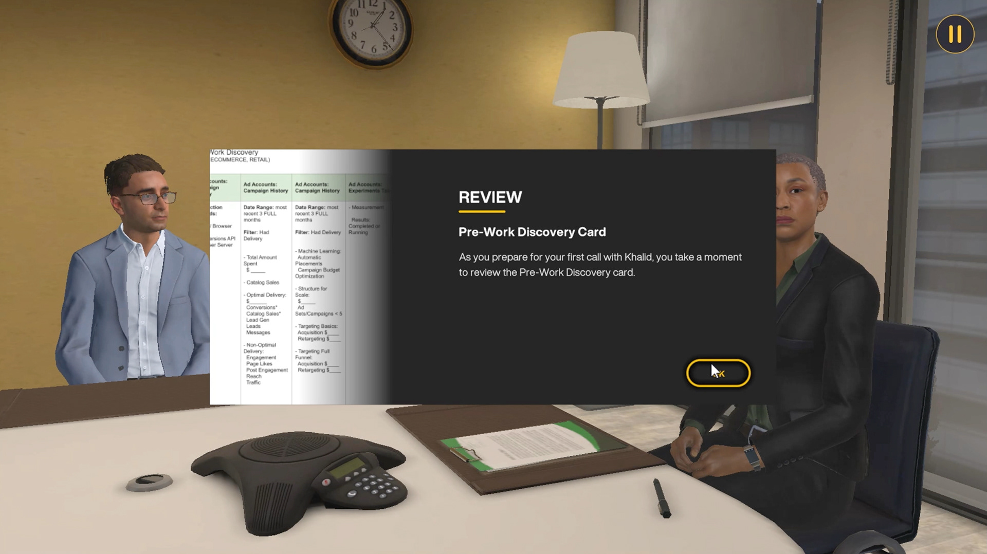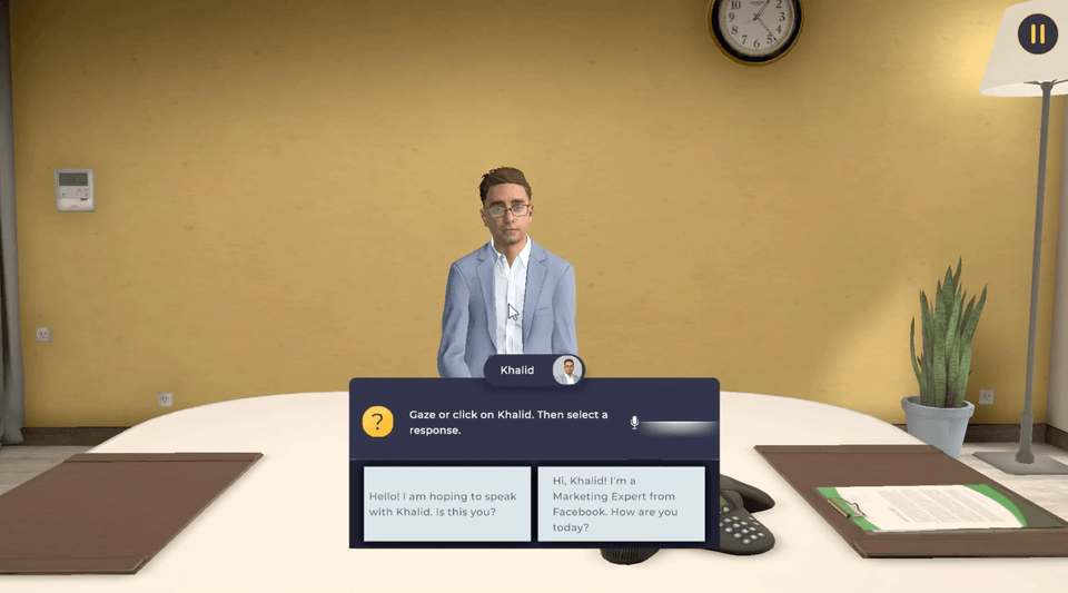 Learners practiced speaking with customers in this immersive experience designed to support Facebook's Small Business Group.